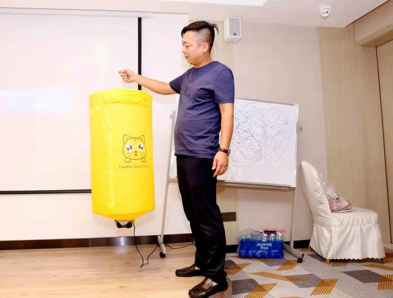 总会执委向汝发对带来的产品——共享烘干机